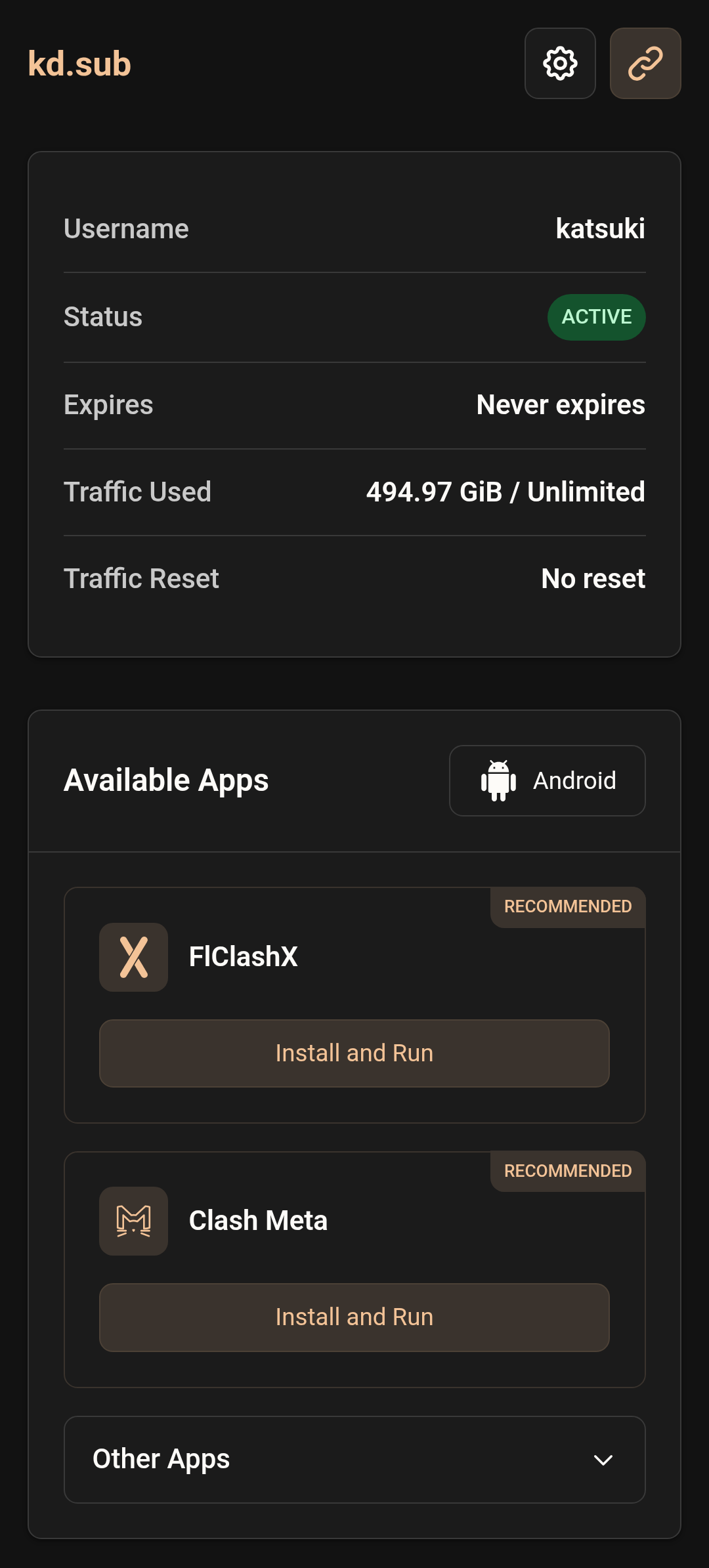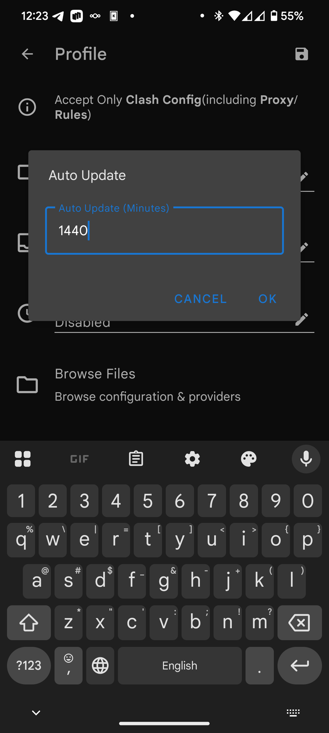 Выбираем тип профиля URL. Даем профилю любое название (например kdvps), в поле URL вставляем ссылку на подписку, в Auto Update ставим 1440 минуты (обновление профиля раз в сутки). Нажимаем на кнопку сохранения в правом верхнем углу.
